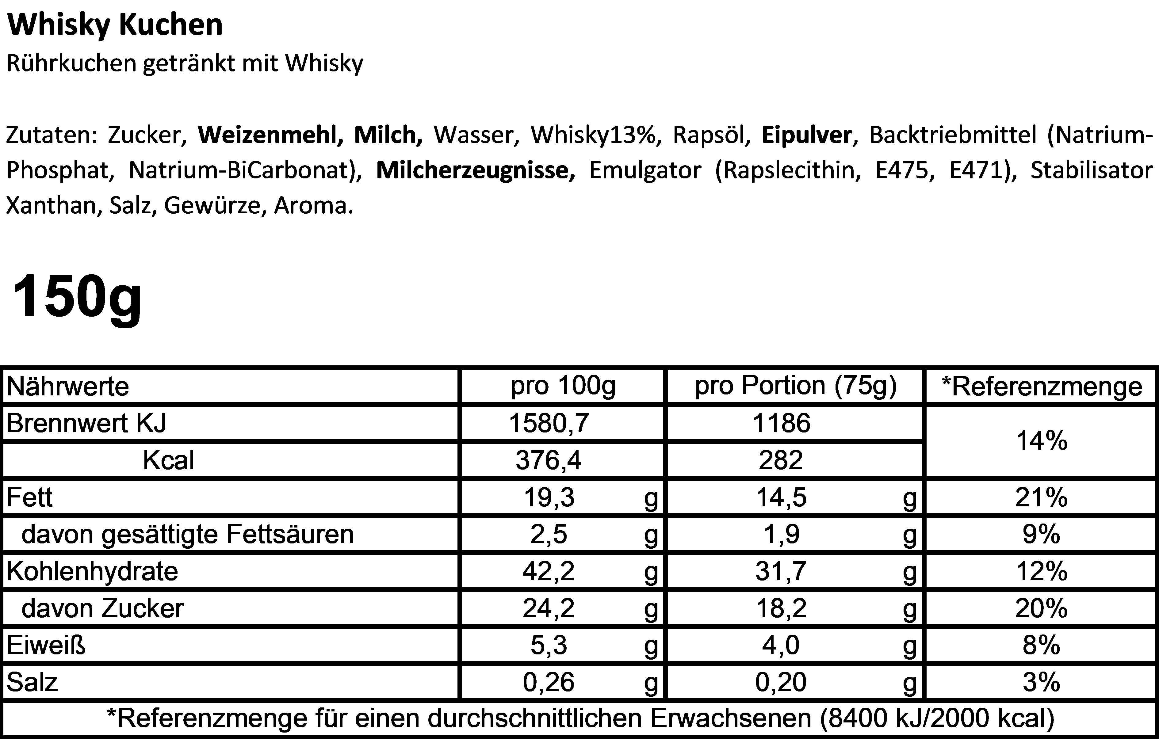Inhalt: ca. 150 g / Kuchen