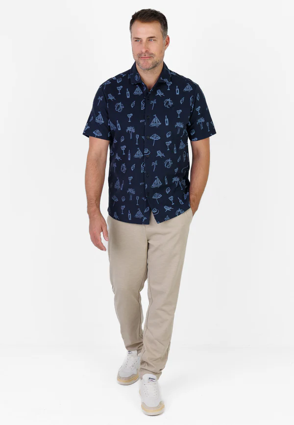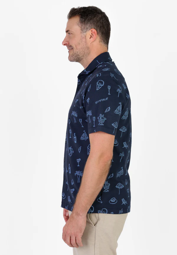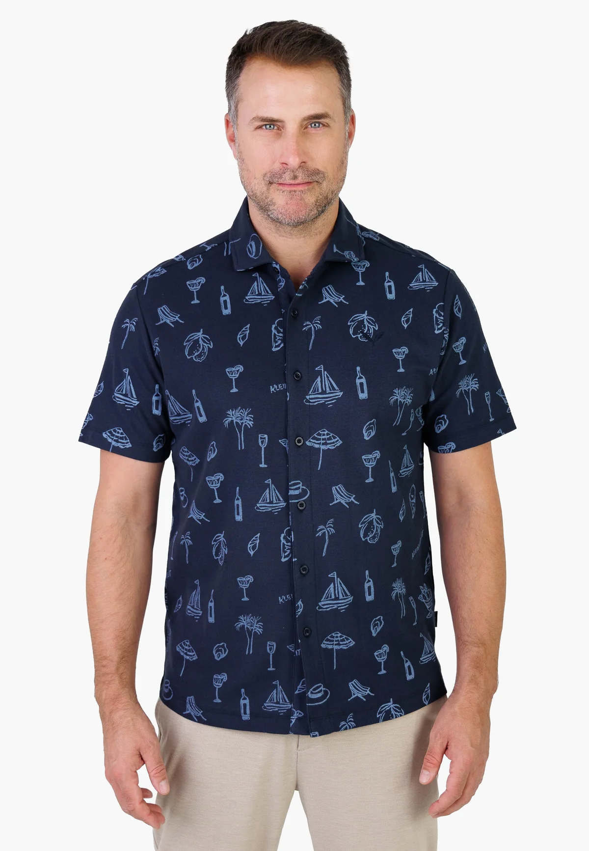 • Allover-Print mit Sommer-Icons: Palmen, Segelboot, Drinks & Co.